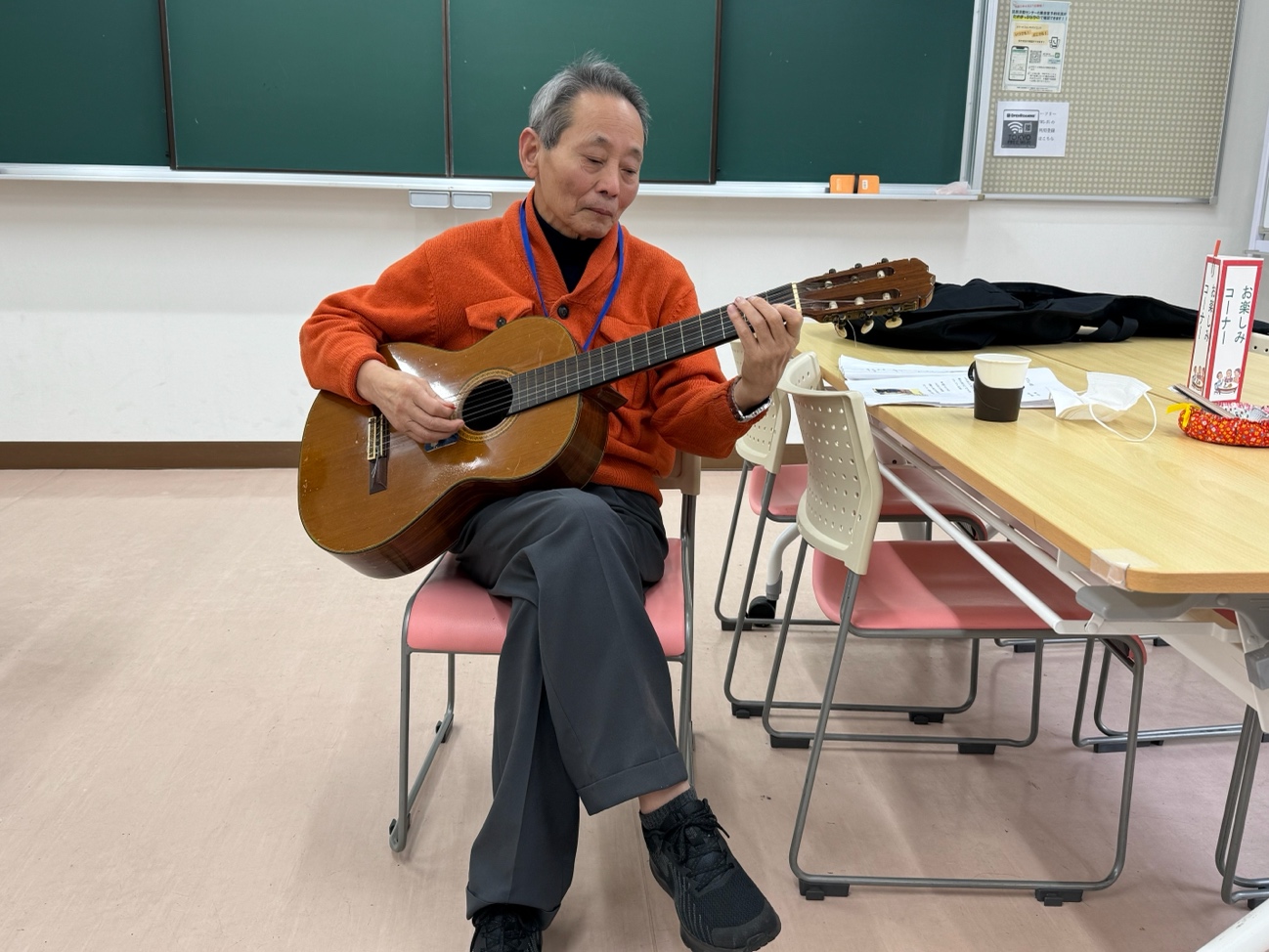 さっそく山口さんのギター演奏で合唱しました。